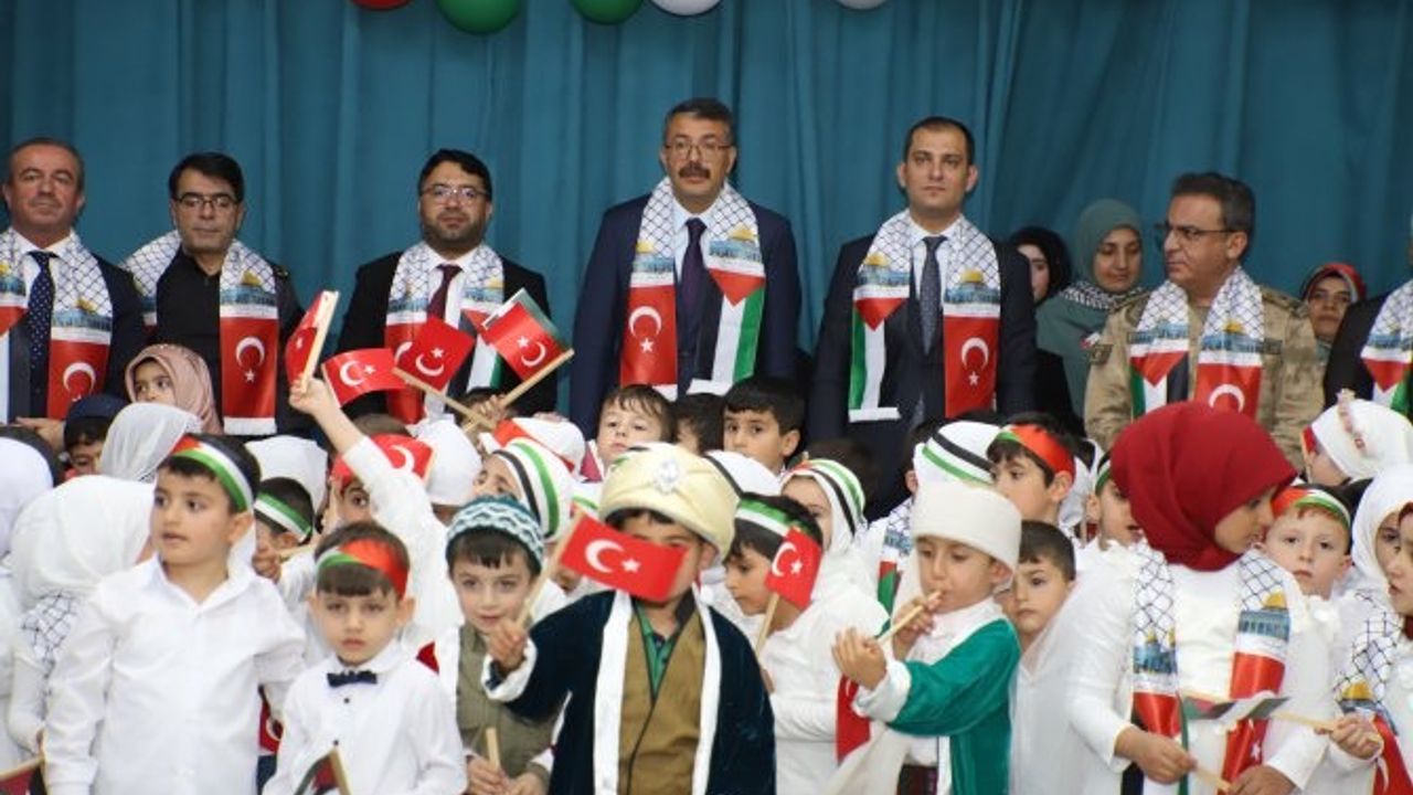 Vali Çelik konuşmasının devamında; “Refah Sınır Kapısı ve Gazze’de binlerce çocuğun katili olan bir devlete karşı mücadele eden Filistinlileri buradan sevdiklerimizle birlikte anarak, çocuklarımızın en temiz en kalbi duygularıyla ve dualarıyla birlikte oradaki Müslüman kardeşlerimize Rabbimizin yardımcı olması için dua ediyoruz.