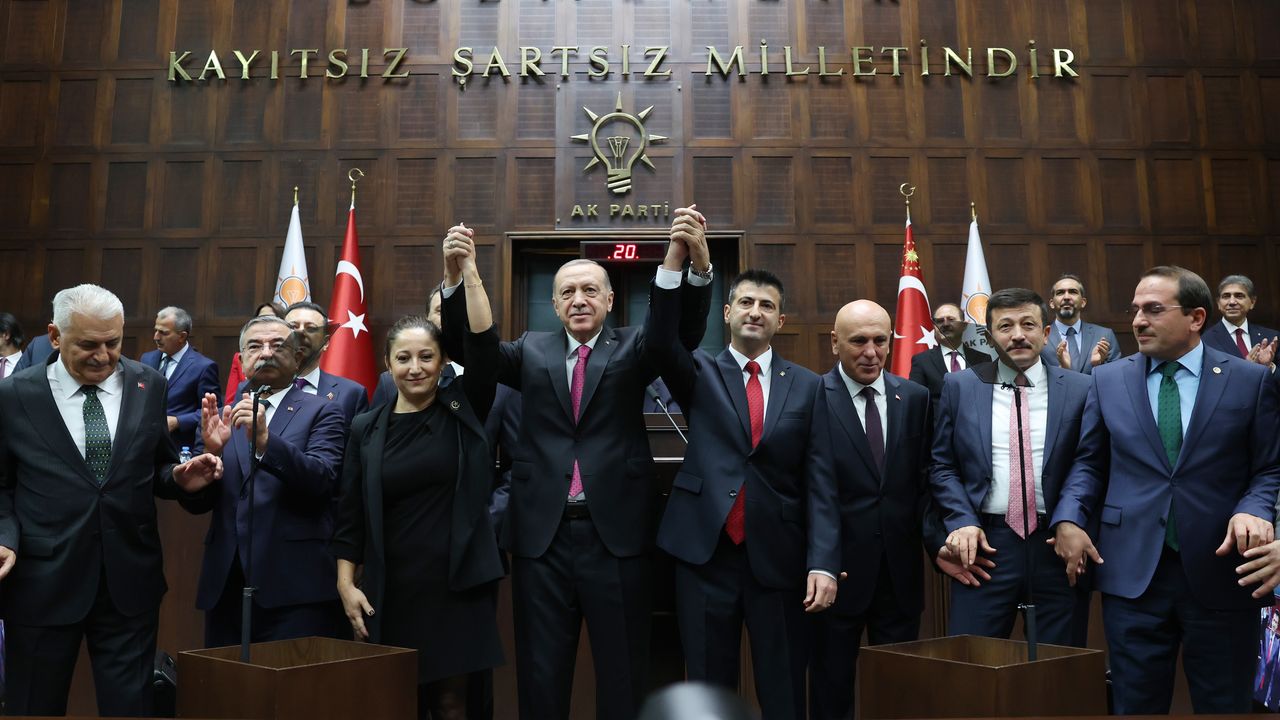 AK Parti Grup Toplantısının başında Cumhurbaşkanı Recep Tayyip Erdoğan, AK Parti'ye katılan Mehmet Ali Çelebi'ye rozetini taktı.