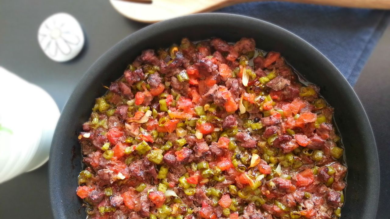 Önce acı sivri biberleri doğrayıp tavanın altına seriyoruz. Daha sonra üzerine kuşbaşı etleri serip, etlerin üzerine de sarımsak ve doğranmış domatesleri ekliyoruz. Daha sonra en üste ince doğranmış kuyruk yağı ve bir miktar tuz ilave edip tavayı hazırlıyoruz. Önceden ısıtılmış 250 derece fırında 1-1,5 saat kadar pişirdikten sonra servis ediyoruz.