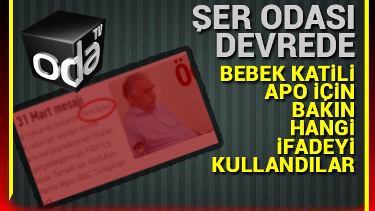 İmralı'da tutuklu bulunan PKK terör örgütünün elebaşı Abdullah Öcalan'ın mesajını manşetine taşıyan Odatv, haberin giriş kısmında bebek katili Öcalan'dan "PKK lideri" şeklinde bahsetti.