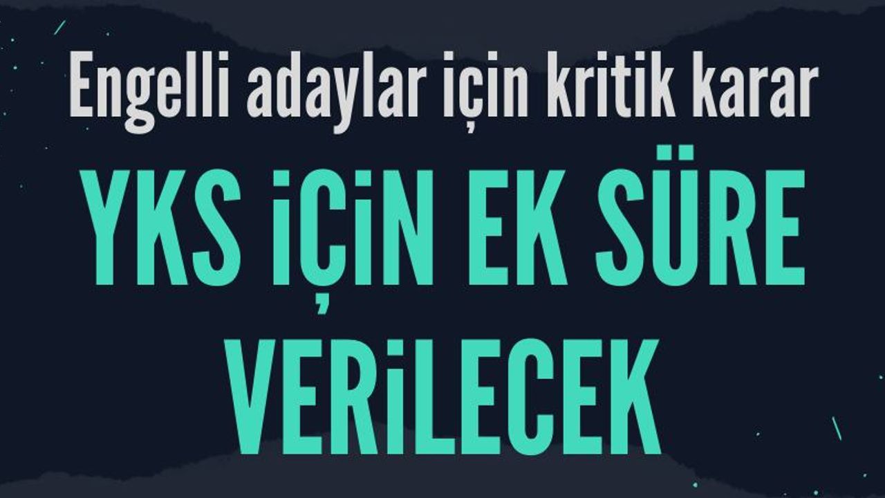ÖSYM'nin konuya ilişkin kararında, "2024-YKS dahil yükseköğretime geçiş sınavlarında ek süreden faydalanma hakkı olmayan okuyucu veya işaretleyici yardımı alan engelli adaylara 30 dakika ek süre verilmesine karar verilerek, ilgili tavsiye kararınızda Başkanlığımıza yönelik belirtilen tavsiye uygulamaya alınmıştır." ifadesi kullanıldı.