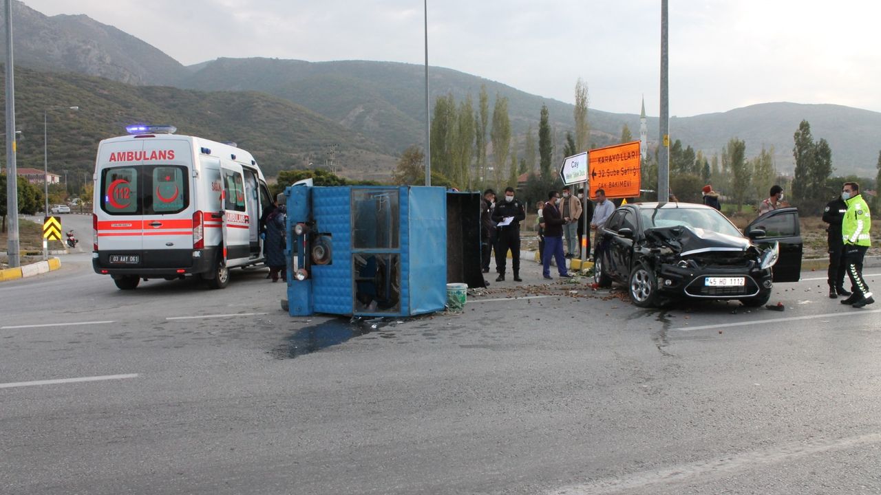 Bekir Kocadağ (36) idaresindeki 45 HD 1112 plakalı otomobil, ilçe girişindeki Ali Kaleli kavşağında, Orhan Erdoğan'ın (85) kullandığı "pat pat" diye tabir edilen tarım aracına arkadan çarptı.