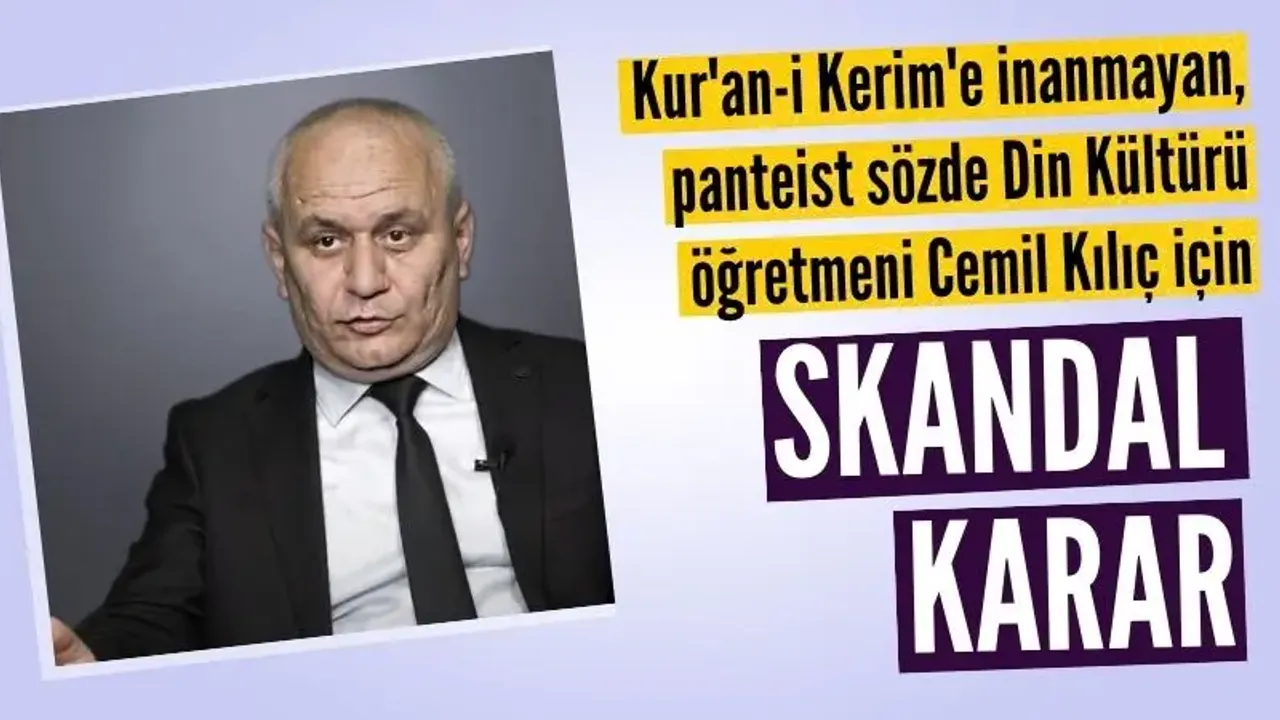 "Kur'an Allah'ın kelamı değildir." Ben panteistim ve Şeriat'a karşıyım gibi ahlaka sığmayan kelimeler sarf eden sözde öğretmen Cemil Kılıç yaptığı açıklamaların ardından MEB tarafınca görevinden ihraç edilmişti.
