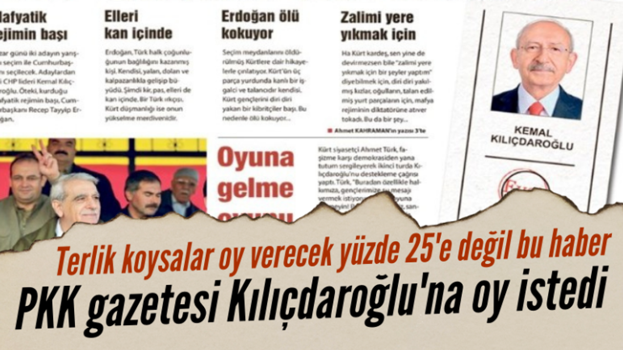 Terör örgütlerinin açık desteğin alan Millet İttifakı'nın cumhurbaşkanı adayı Kemal Kılıçdaroğlu'na bir destek de PKK'nın yayın organı Yeni Özgür Politika gazetesinden geldi.