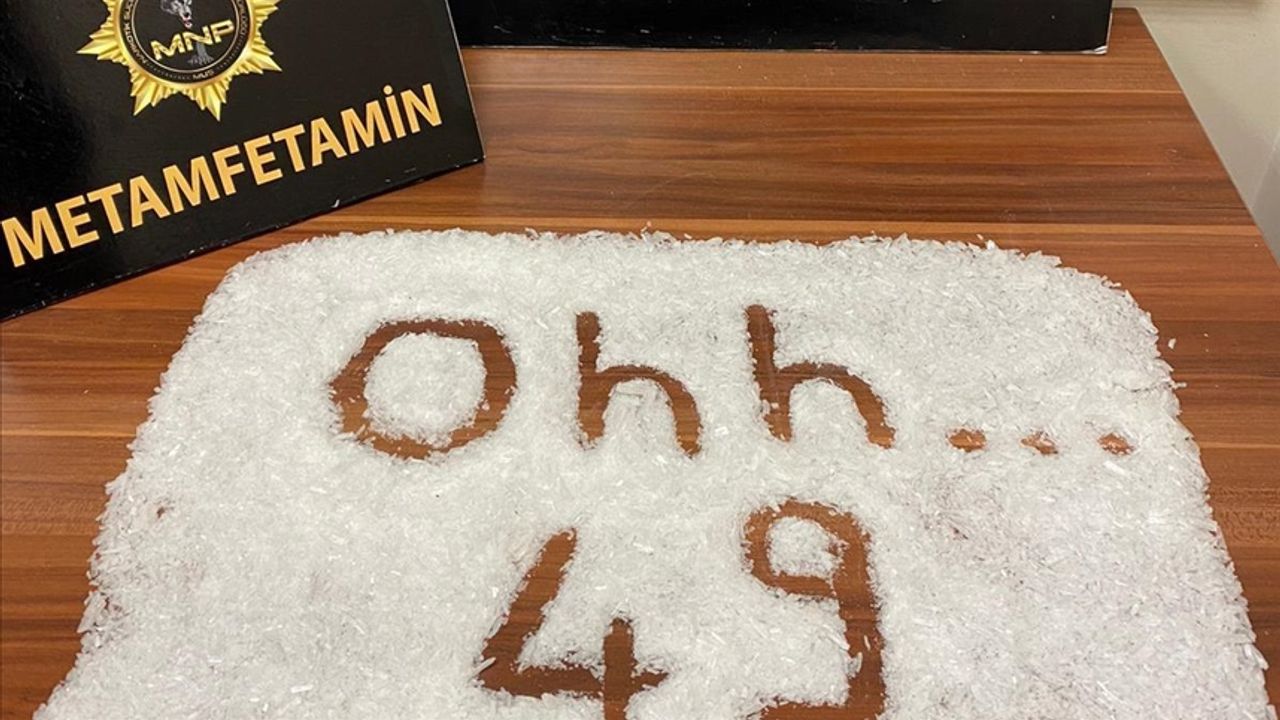 Polis ekipleri, İçişleri Bakanı Soylu'nun TBMM Genel Kurulunda Bakanlığının 2021 yılı bütçe görüşmelerinde yaptığı konuşmaya destek vermek amacıyla ele geçirilen uyuşturucuyla "ohh" yazdı.