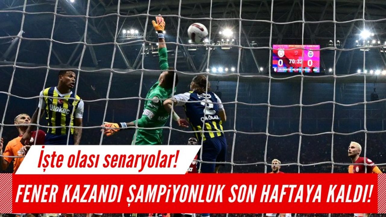 Süper Lig'in 37. haftasında Fenerbahçe, ezeli rakibi Galatasaray'ı deplasmanda 1-0 yenerek, zirve yarışında puan farkını 3'e indirdi. Bu sonuçla şampiyonluk yarışı son haftaya taşınmış oldu.