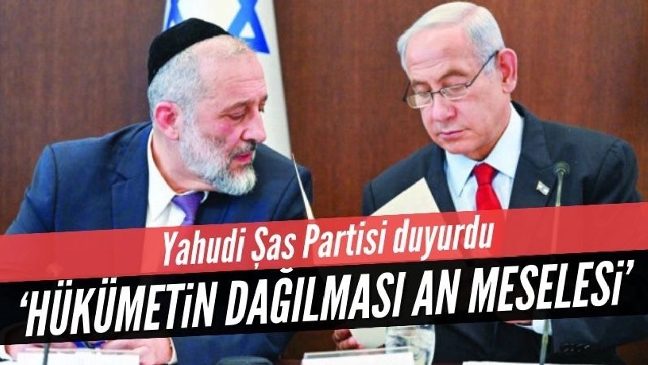 Habere göre, Şas Partisi, İsrail hükümetinin dağılmasının an meselesi olduğu uyarısında bulundu ve söz konusu yasa taslağının geri çekilmesine yanıt olarak atılacak adımları ele alacağını bildirdi.