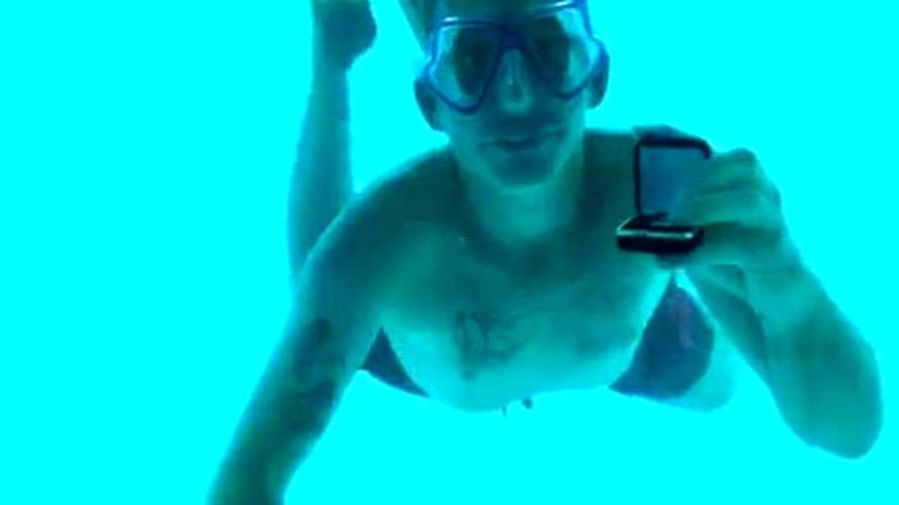Kız arkadaşına sürpriz bir evlilik teklifi yapmayı planlayan genç, sevgilisi odadayken suya dalıp odanın penceresine romantik bir not yapıştırdı.