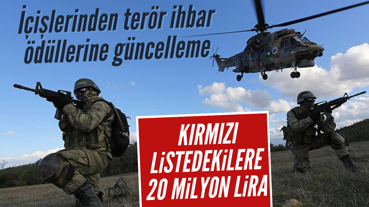 Bu kapsamda Kırmızı Liste’de yer alan teröristler için ödül miktarı 20 milyon liraya yükseltilirken, Turuncu Liste’deki teröristler için 1 milyon liradan 8 milyon liraya, Gri Liste’deki teröristler için ise 500 bin liradan 2 milyon liraya çıkarıldı.