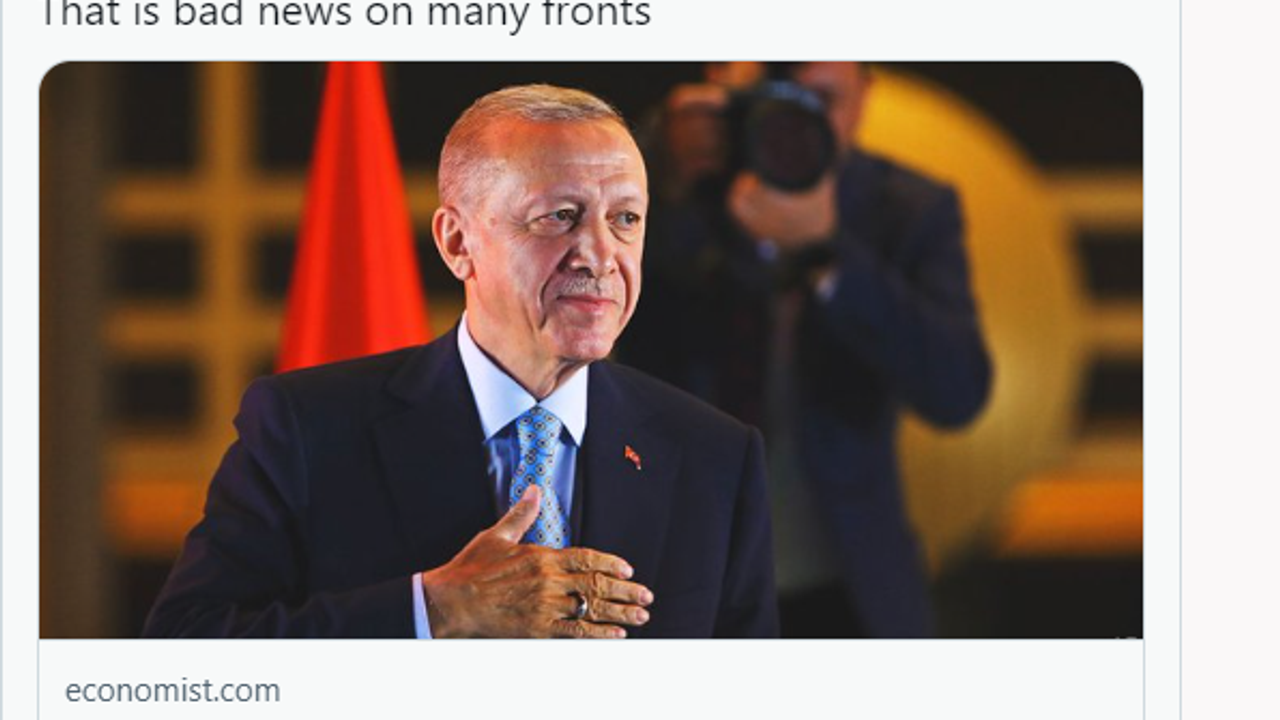 Cumhurbaşkanlığı seçim döneminde açık açık Cumhurbaşkanı Recep Tayyip Erdoğan'ı hedef alan ve Millet İittfakı'nın adayı Kemal Kılıçdaroğlu'nu destekleyen The Economist dergisi, Cumhurbaşkanı'nı itham etmeye devam ediyor.