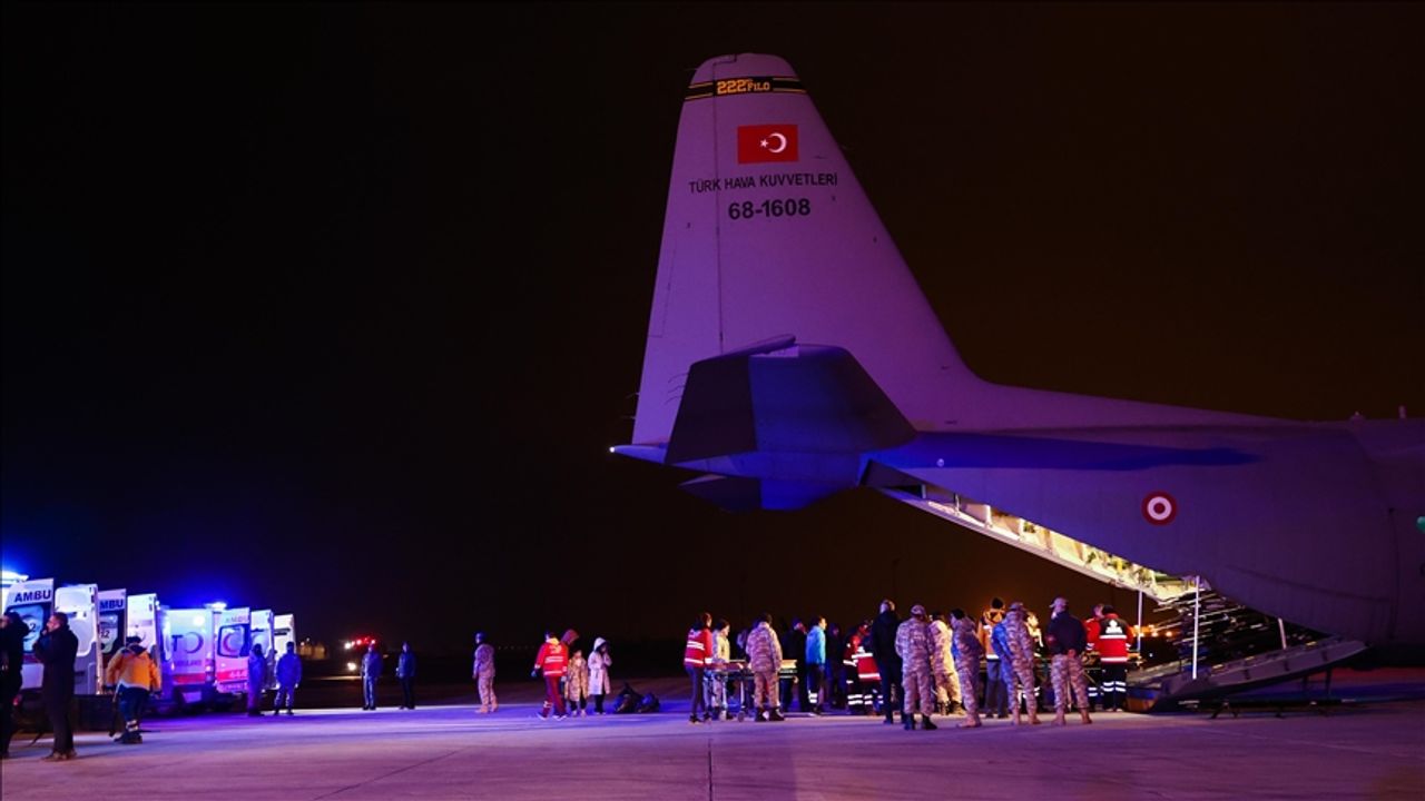 TSK'nın 222. filoya ait C-130 askeri kargo uçağıyla Adana’dan getirilen 30 yaralı depremzede, sağlık ekiplerince ambulanslara alındı.