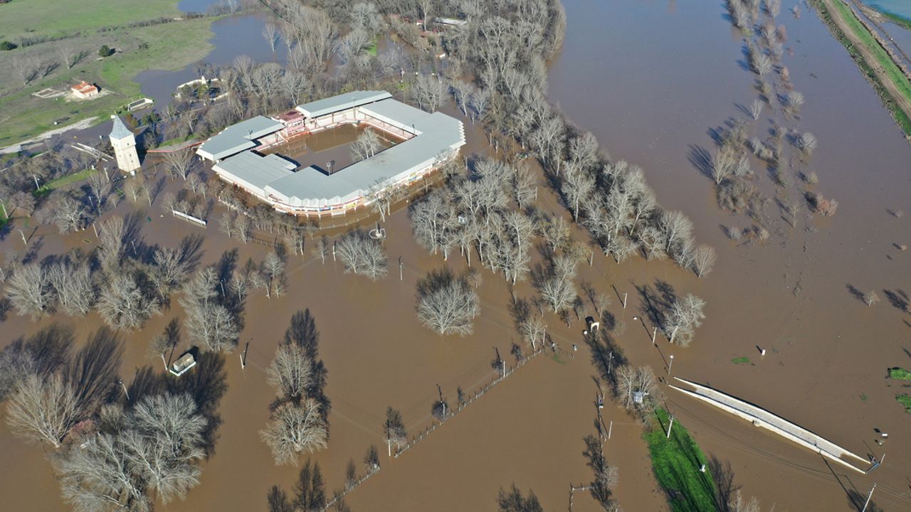 Kırkpınar zamanı pehlivanların güreş tuttuğu çayırlık alan yarım metrenin üzerinde suyla kaplı vaziyette.