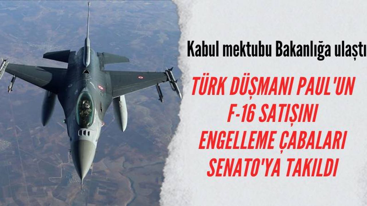 ABD Senatosu, Cumhuriyetçi Senatör Rand Paul'un, Türkiye'ye 23 milyar dolarlık F-16 savaş uçağı ve modernizasyon kiti satışını durdurma girişimini kesin bir sonuçla reddederek F-16 satışını onayladı. Rand Paul'un 'onaylamama' önerisine karşı 61'e karşı 10 destekçi çıktı.