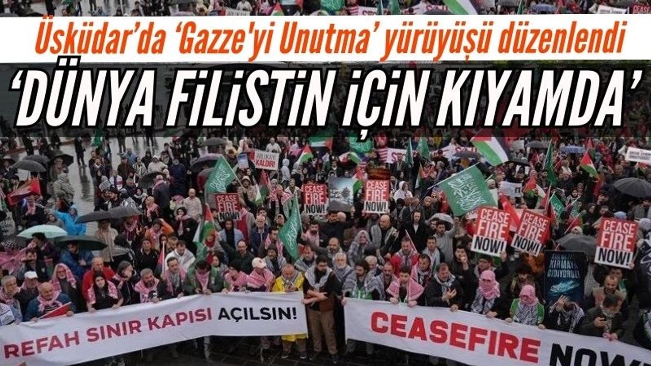 Üsküdar’da, İnsan Hak ve Hürriyetleri (İHH) İnsani Yardım Vakfı ile Uluslararası Özgürlük Filosu Koalisyonunca "Gazze'yi Unutma" yürüyüşü düzenlendi.