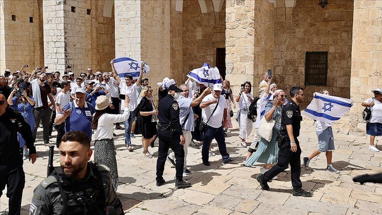 Fanatik Yahudiler, bu sabah İsrail bayrakları açarak Mescid-i Aksa'ya baskın düzenlerken, İsrail polisi buradaki Müslümanlara müdahale etmişti.
