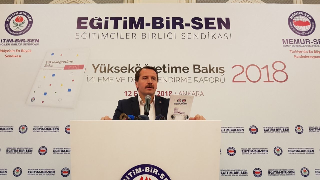Eğitim-Bir-Sen ve Memur-Sen Genel Başkanı Ali Yalçın, Eğitim-Bir-Sen'in hazırladığı "Yükseköğretime Bakış 2018 İzleme ve Değerlendirme" raporunu, Millî Eğitim Bakan Yardımcısı Mustafa Safran, YÖK Yürütme Kurulu Üyesi Prof. Dr. Mehmet Şişman, milletvekilleri, rektörler, akademisyenler ve bürokratların da katıldığı bir basın toplantısıyla açıkladı.