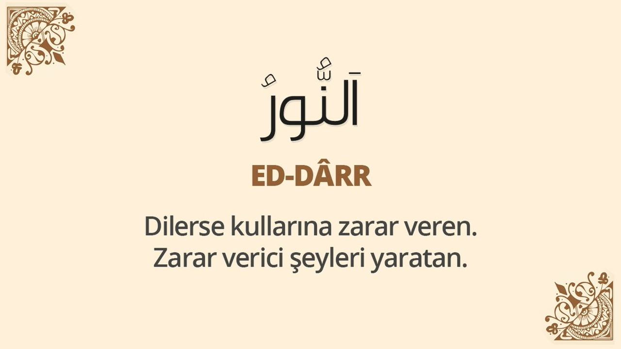 Ed-Darr esmasının manası : Elem ve zarar verici şeyler yaratan, dilediğine felaket, keder ve şiddet veren, zarara uğratan demektir. Zarara uğratan .Her şer kabul edilenin mutlak var edicisi. Hikmeti gereği elem ve zarar verici şeyleri de yaratan.