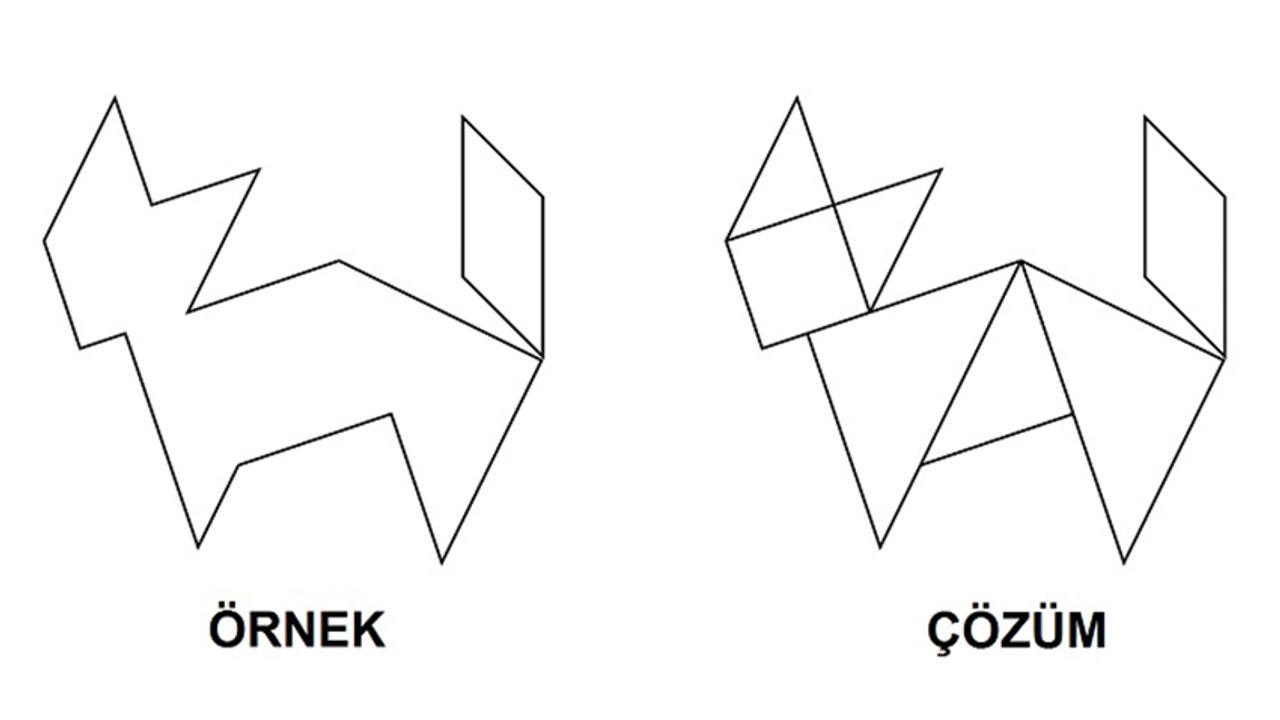 Çocuğuna aşağıdaki gibi taslaklar hazırlayarak, Tangram oyuncak şekilleriyle bu formları oluşturmasını isteyebilirsin. Böylece etkinliği zevkli bir ev oyunu haline getirerek birlikte eğlenceli bir şekilde vakit geçirmiş olursunuz.