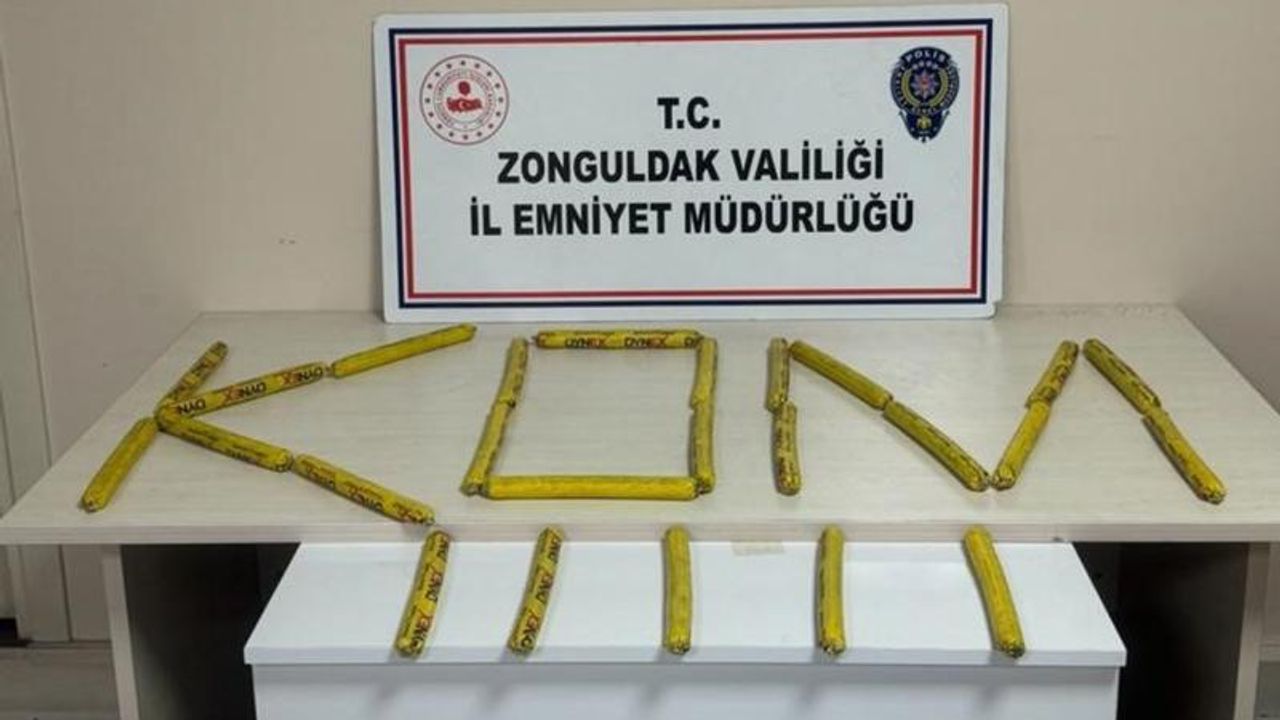 Şüphelilerin aracında 25 dinamit ele geçirildi.