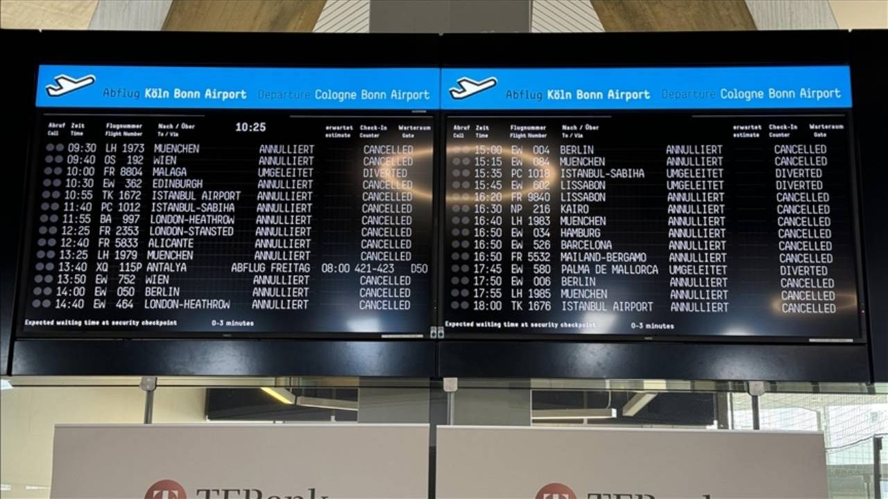 Havalimanı Sözcüsü Katja Bromm, Alman medyasına yaptığı açıklamada, tüm seferlerin iptal edildiğini, gün boyunca uçakların kalkış ve iniş gerçekleştirmeyeceğini belirtti.