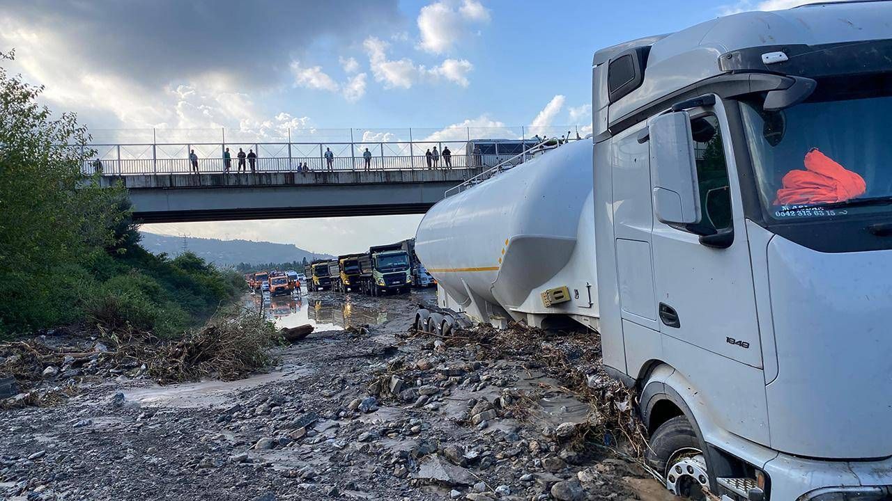 Karayolları Genel Müdürlüğü'ne bağlı ekipler, bölgede mahsur kalan araçları kurtararak yolu ulaşıma açmak için çalışma başlattı.