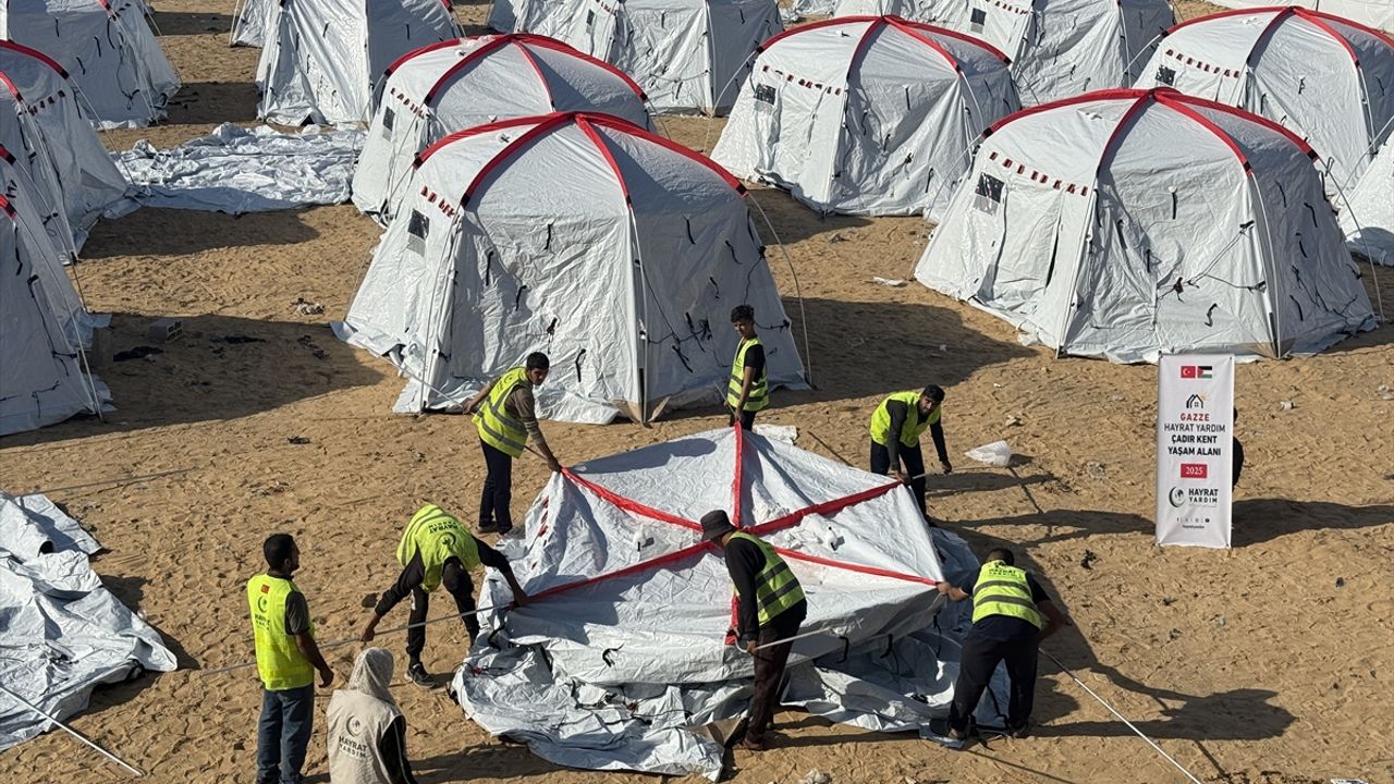 Dernekten yapılan açıklamaya göre, Gazze'de zemin hazırlığı ve çit çevirmeyle başlayan proje kapsamında kubbe şeklinde 58 çadır yerleştirildi.