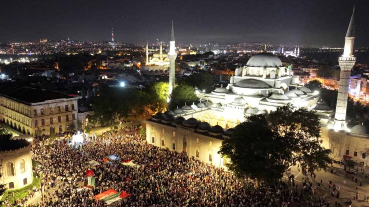 Fatih Camii'nde akşam namazını kıldıktan sonra avluda toplanan grup, `Milyonlarca şehitle Kudüs'e yürüyoruz` yazılı pankart açtı. Buradan hareket eden kalabalık, Türk ve Filistin bayrakları taşıyarak İsrail aleyhine sloganlar attı.