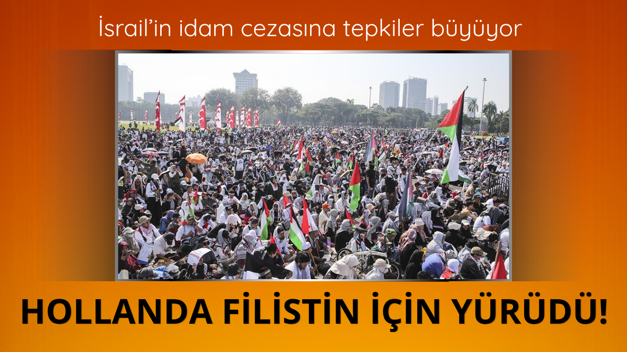 Göstericiler ayrıca, "Özgür Filistin", "Esirleri serbest bırak", "İsrail terörist ülkesi ve Netanyahu terörist", "Hollanda utan, senin de ellerin kanlı" ve "Soykırımı durdur" sloganları attı.