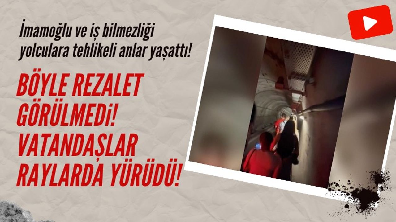 Yenikapı-Hacıosman metro hattında durak arasında hareket kabiliyetini yitiren araçlardan inen yolcular, rayların üzerinden en yakın istasyona yürüdü.