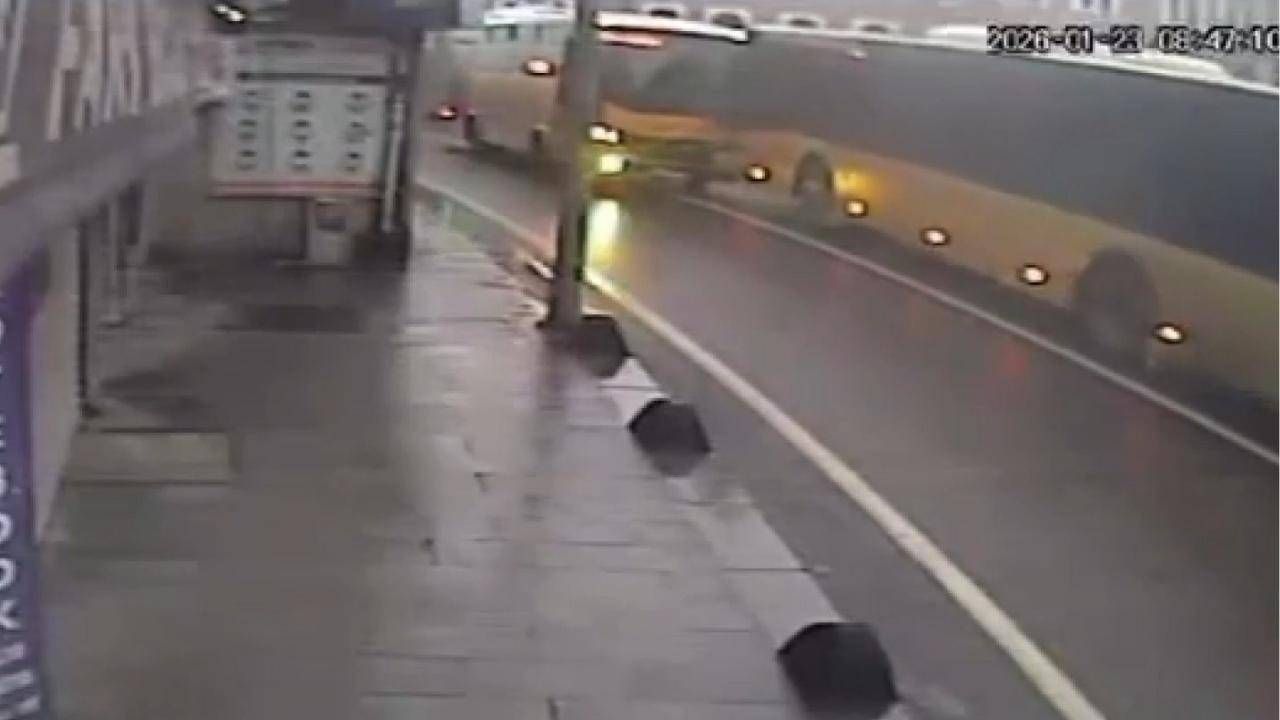 Çevredeki güvenlik kamerasınca kaydedilen görüntülerde, karşı yönden gelen 2 otobüsün çarpışması yer alıyor.