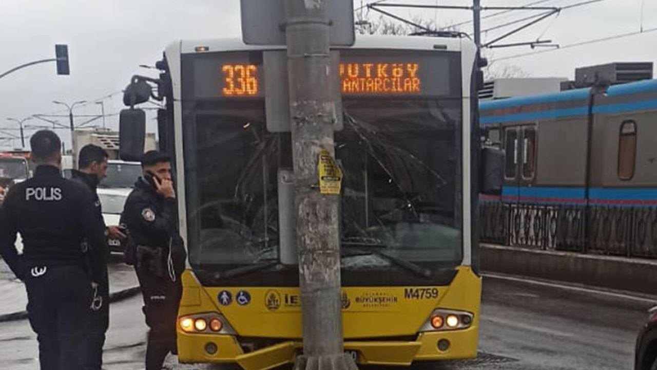 Alınan bilgiye göre, 336 Arnavutköy-Eminönü seferini yapan İETT otobüsü, Malkoçoğlu Mahallesi'nde ilerlediği sırada, yola dökülen yakıt ve yağmur nedeniyle kayganlaşan yolda virajı alamayarak trafik levhası direğine çarptı.