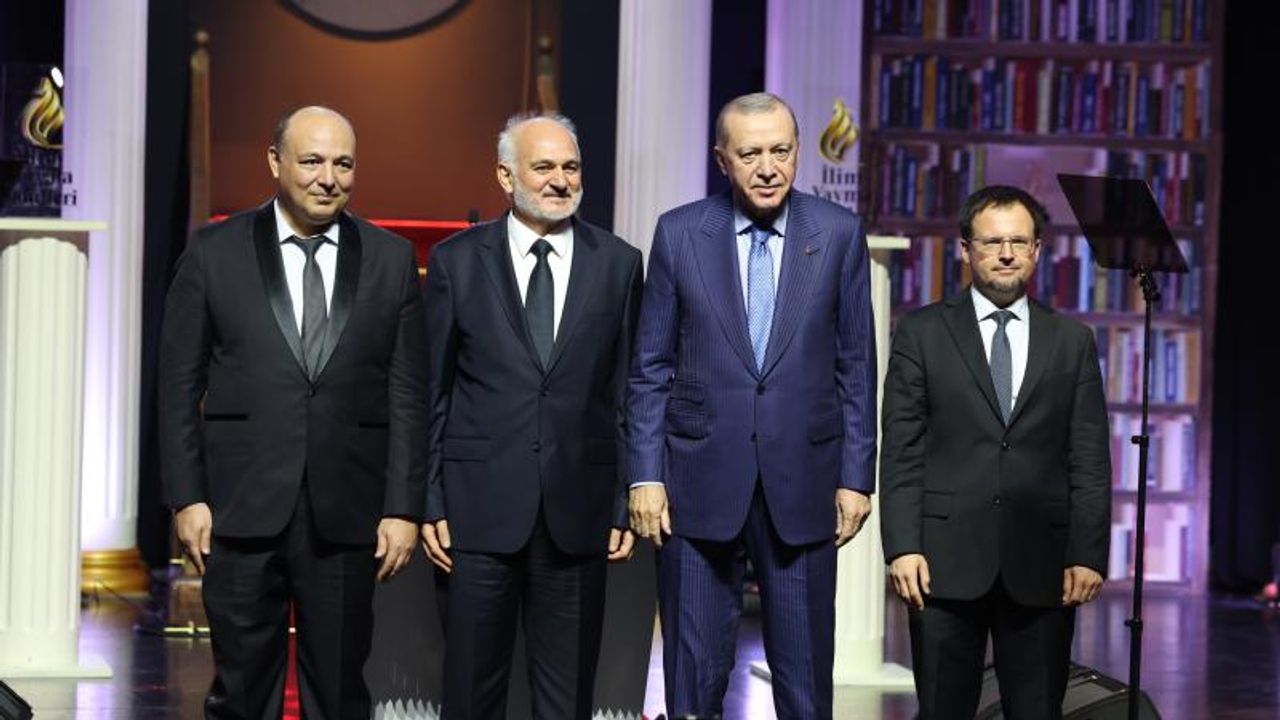 İlim Yayma Ödülleri'nin sadece bir ödül töreni olmadığını vurgulayan Erdoğan, "Biz bugün burada ilmi susturmaya çalışanlara hakikati bastırmak isteyenlere inat hakikatin cesaretle yücelten hocalarımızı baş tacı ediyoruz. Bu vesileyle İlim Yayma Ödülleri 2025'e üstün çalışmalarıyla ödüle layık görülen üç değerli bilim insanımızı gönülden tebrik ediyorum." dedi.