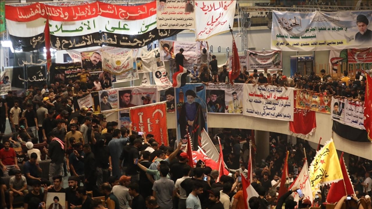 Sadr yanlıları, İran’a yakın Şii siyasi çatı kuruluş Koordinasyon Çerçevesi’nin başbakan adayı Sudani’yi protesto etmek amacıyla 30 Temmuz Cumartesi günü Yeşil Bölge’ye girerek Meclis binasını basmış ve burada oturma eylemi başlatmıştı.