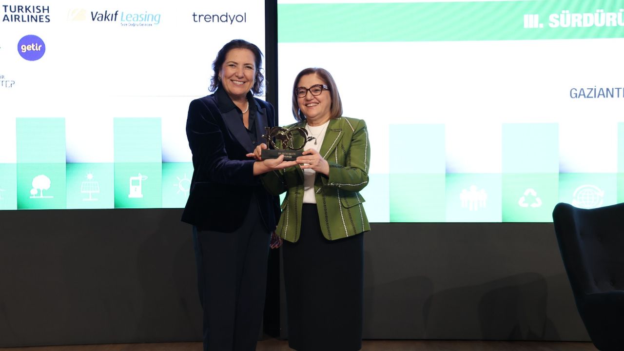“Sürdürülebilir Liderle Ödülleri” kapsamında Gaziantep'i Türkiye'nin 'Yeşil Şehri' haline getirme yolundaki kararlı adımları, yenilenebilir enerji yatırımları, iklim değişikliğiyle mücadele kapsamındaki vizyoner projeleri, Gaziantep'in köklü kültürel mirasını dünya sahnesine taşıyarak şehri küresel bir cazibe merkezi haline getirmesi ve kentsel kalkınmayı doğa dostu politikalarla harmanlayarak yerel yönetimlerde çizdiği ilham verici liderlik profili vesilesiyle Gaziantep Büyükşehir Belediye Başkanı Fatma Şahin ödüle layık bulundu.