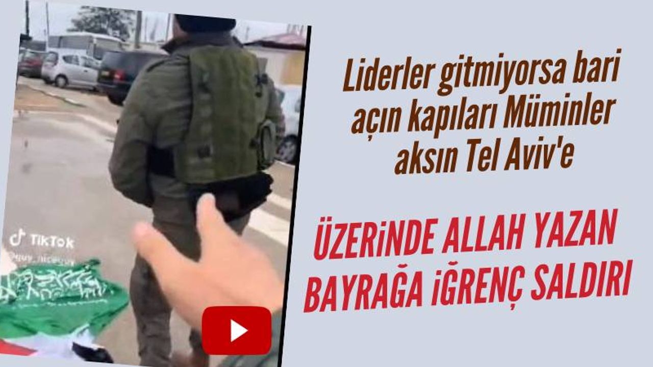 Netanyahu'nun katil sürüsü bir İsrail askeri, üstünde Allah'ın ayetinin bulunduğu bayrağa idrarını yaptı. Olayı kayda alan bir kişi işgalci bu ahlaksızlığa tepki gösterirken Netanyahu'nun katil askeri sırıtarak yol yerinden uzaklaştı.