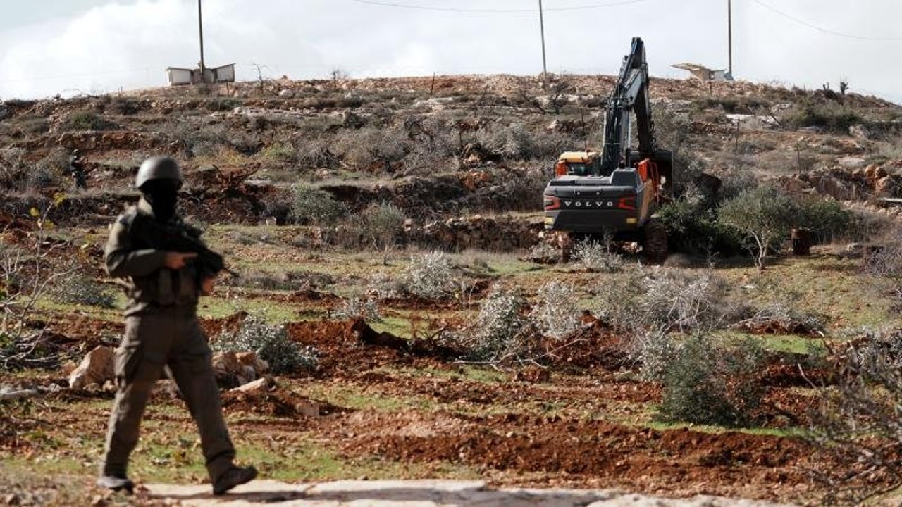 İsrailli işgalciler, burada Filistinlilere ait yaklaşık 400 zeytin ağacını tahrip ederek kesti.