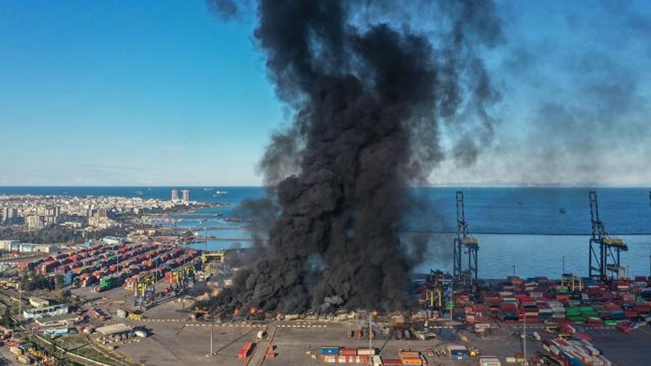 Merkez üssü Kahramanmaraş'ın Pazarcık ve Elbistan ilçeleri olan ve 10 ili etkileyen 7,7 ve 7,6 büyüklüğündeki depremler sonrasında limanda devrilen konteynerlerde henüz belirlenemeyen nedenle çıkan yangın sürüyor.