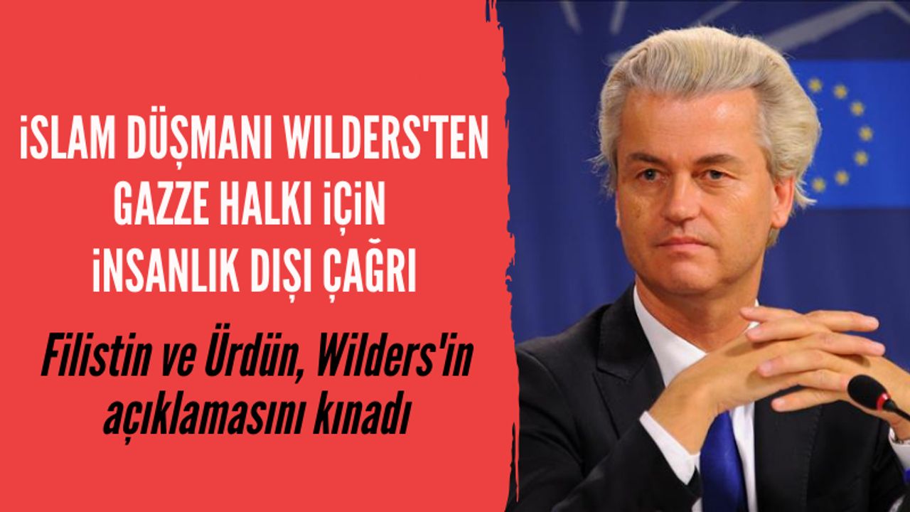 Aşırı sağcı ve İslam düşmanı Hollanda Başbakanı Geert Wilders, işgalci İsrail'in zulmettiği Filistinlilerin Ürdün'e sürgün edilmesi çağrısında bulundu. Ancak, Filistin Dışişleri Bakanlığı ve Ürdün, Wilders'in açıklamalarını sert bir şekilde kınayarak,Hollandalı ırkçı siyasetçinin, Filistinlilerin özgürlük hakkını reddettiği vurgulandı.