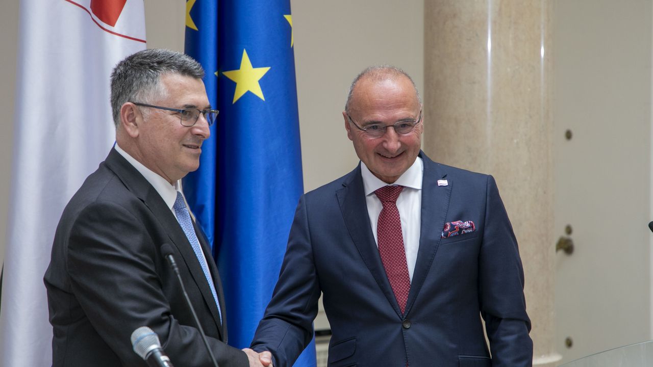 Hırvatistan Dışişleri Bakanı Gordan Grlic Radman ile Saar, başkent Zagreb'de bir araya gelmelerinin ardından düzenlenen basın toplantısında konuştu.