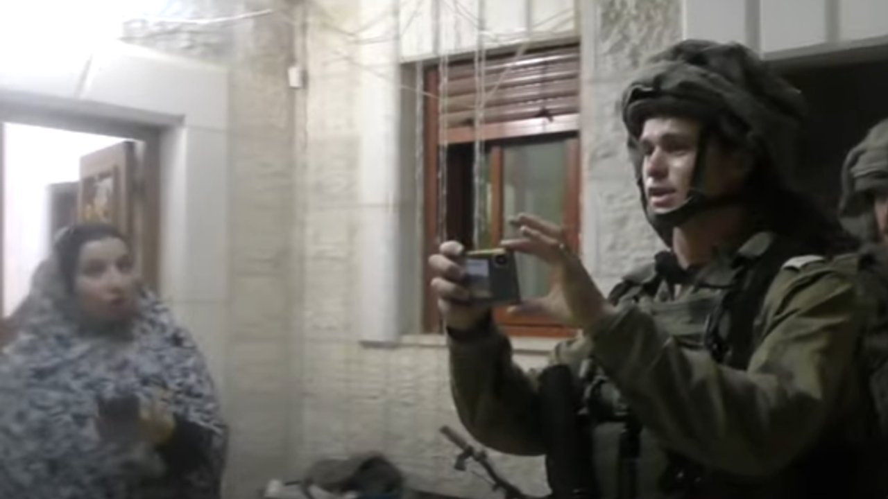 Görüntülerde Filistinli bir anne İsrail askerine “Askerler evinize girip çocuklarınızın fotoğraflarını çekse nasıl hissedersiniz?” sorusu yöneltiyor.
