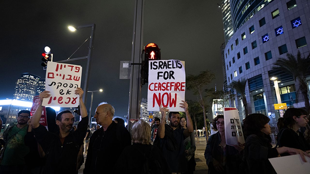 Tamamını İsrailli Yahudilerin oluşturduğu grup, ellerinde “Savaşı durdurun”, “Hemen ateşkes” ve “Katliama hayır” şeklinde İbranice ve İngilizce sloganların yazıldığı dövizler taşıdı.