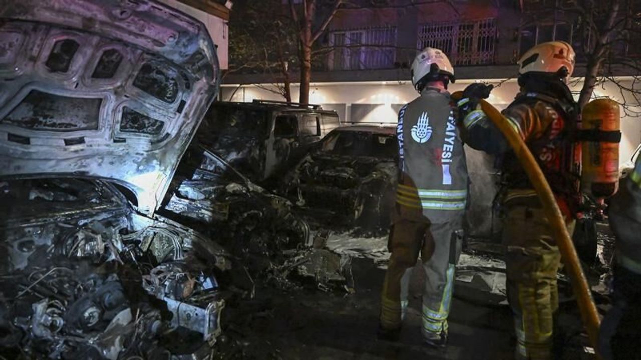 İtfaiye ekiplerinin müdahalesiyle yangın söndürülürken, araçlarda hasar oluştu.