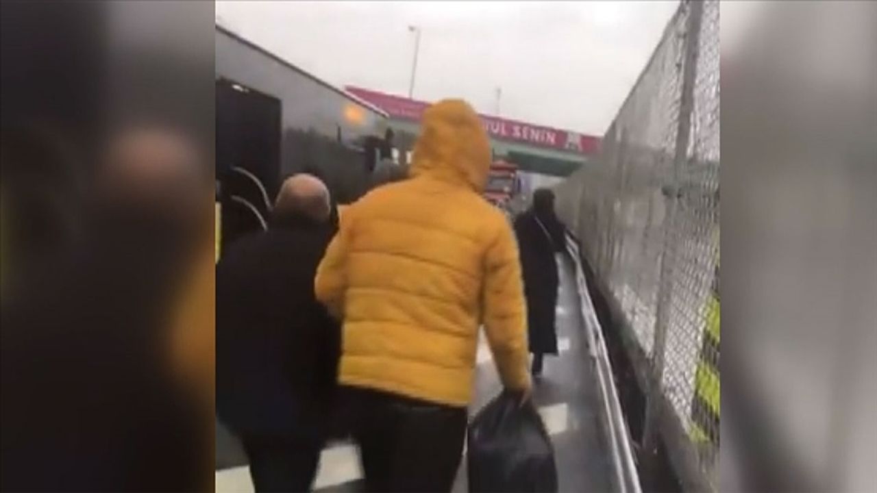 Arızalanan metrobüsten inen yolcuların durağa yürüme anları cep telefonu kamerasına yansıdı.