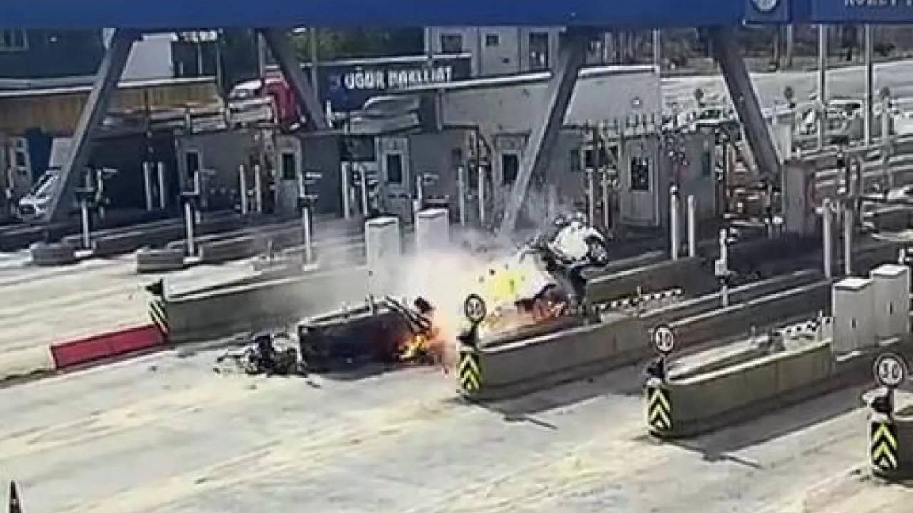 Otoyolda Edirne istikametine giden H.D. idaresindeki 34 GER 871 plakalı otomobil, Arnavutköy mevkisindeki Fatih gişelerinde beton bariyere çarparak alev aldı.
