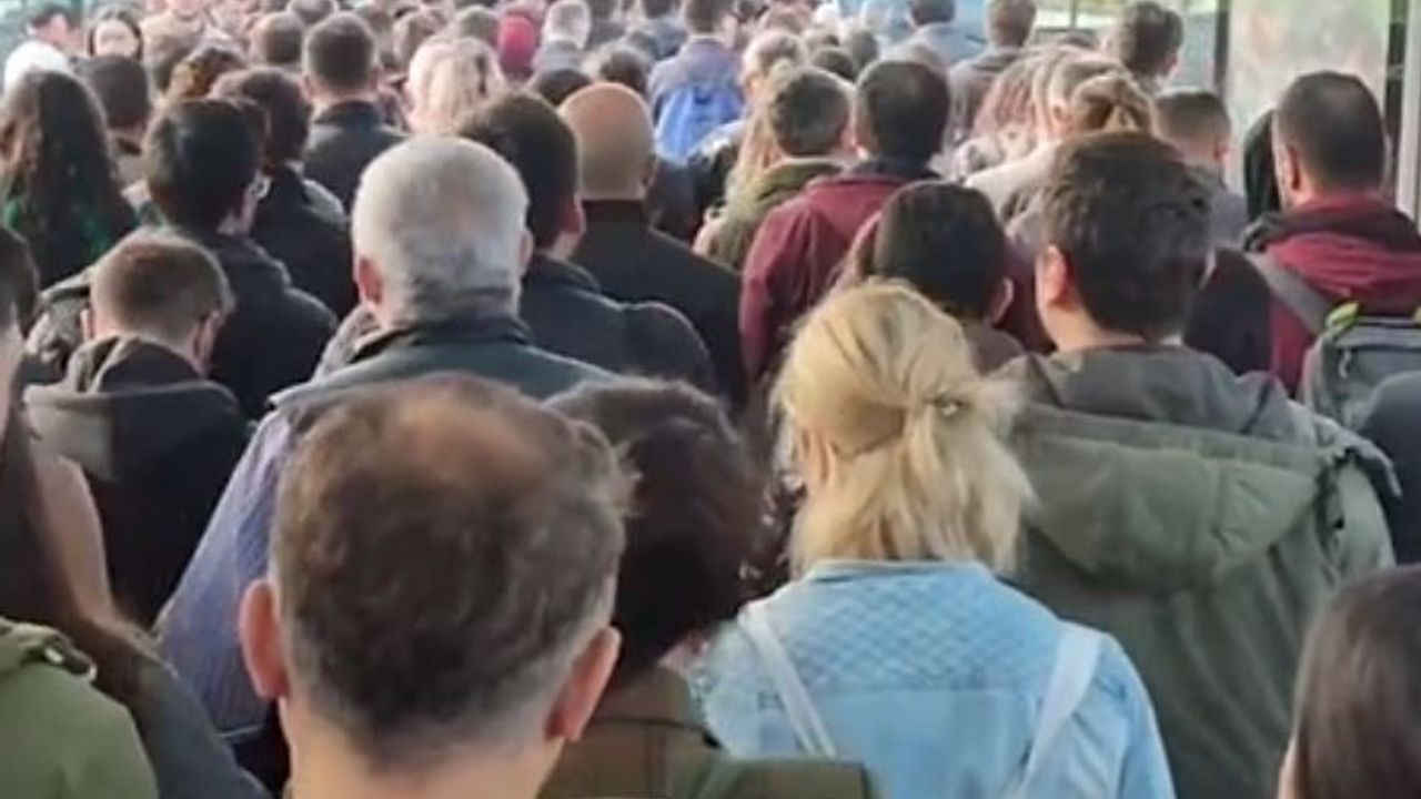 Altunizade metrobüs durağında sabah saatlerinde yolcu yoğunluğu yaşandı.