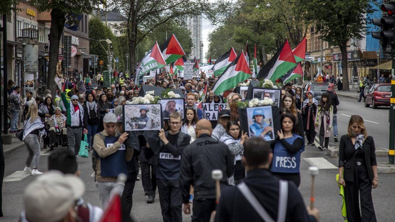 Çok sayıda sivil toplum kuruluşunun çağrısıyla Odenplan Meydanı'nda toplanan yüzlerce kişi, İsrail'in Gazze Şeridi'nin güneyindeki Han Yunus'ta bulunan Nasır Hastanesi'ne 25 Ağustos'ta düzenlediği saldırılarda hayatını kaybeden gazetecilerin sembolik tabutlarını ve fotoğraflarını taşıdı.