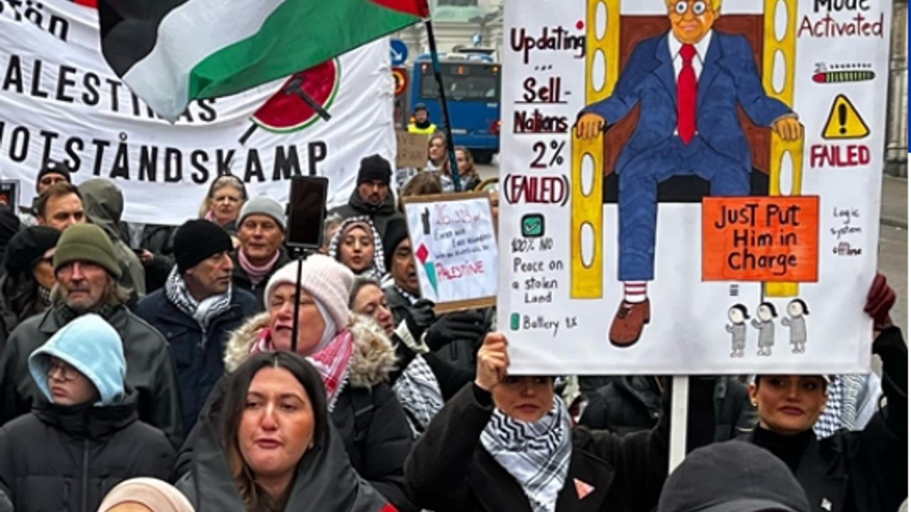 Stockholm'ün Odenplan bölgesinde toplanan göstericiler, Trump'ın Gazze'ye ilişkin planına tepki gösterdi.