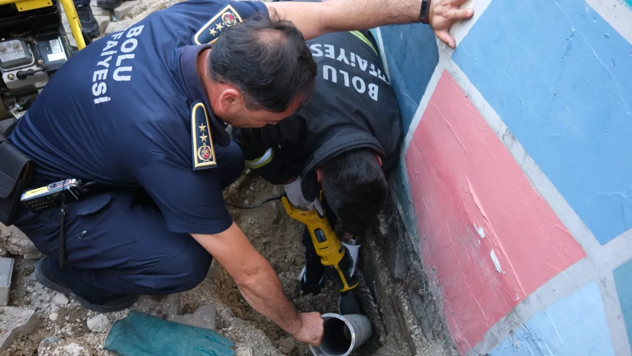 Bolu iline bağlı Borazanlar Mahallesi’nde bulunan bir özel okulun önündeki borudan içeri düşen yavru kedi, civarda bulunan duyarlı bir vatandaşın belediyeye haber vermesi üzerine kurtarıldı. 1 buçuk metrelik derinlikte sıkışıp kalan yavru kediyi kurtarmak için seferber olan ekipler, öncelikle borunun üzerindeki betonu kırdı. Ardından itfaiye aracında hazır bulunan elektrikli kesim motoruyla boru kesildi ve yavru kedi sağ salim çıkartıldı.
