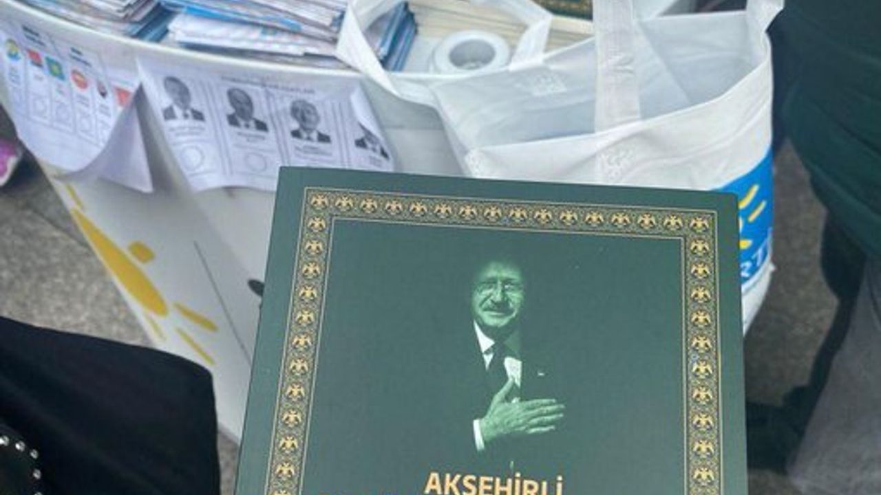 İstanbul Fatih’teki İyi Parti standında, Kılıçdaroğlu’nun Peygamber soyundan geldiği iddialarını içeren bir kitap dağıtıldı.