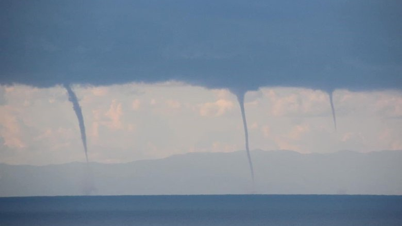İzmir'in Çeşme ilçesinde deniz üzerinde aynı anda çok sayıda hortum görüntülendi.